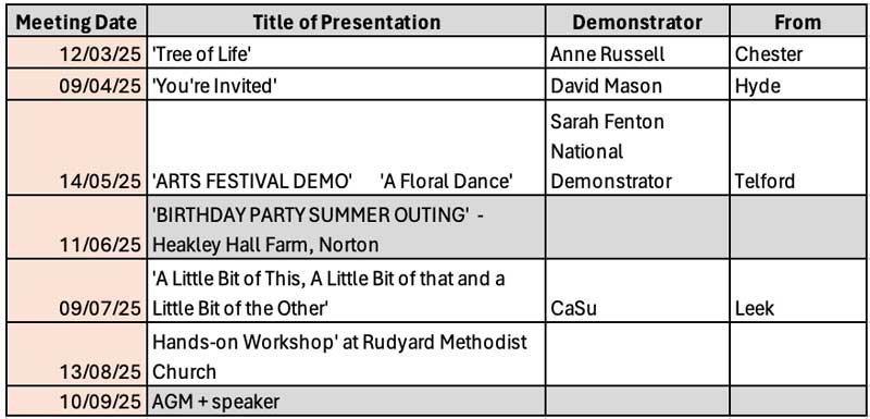 The meetings normally take place at St. Edwards Junior High School, Westwood Road, Leek, ST13 8DN, starting at 7.30 pm unless stated otherwise.