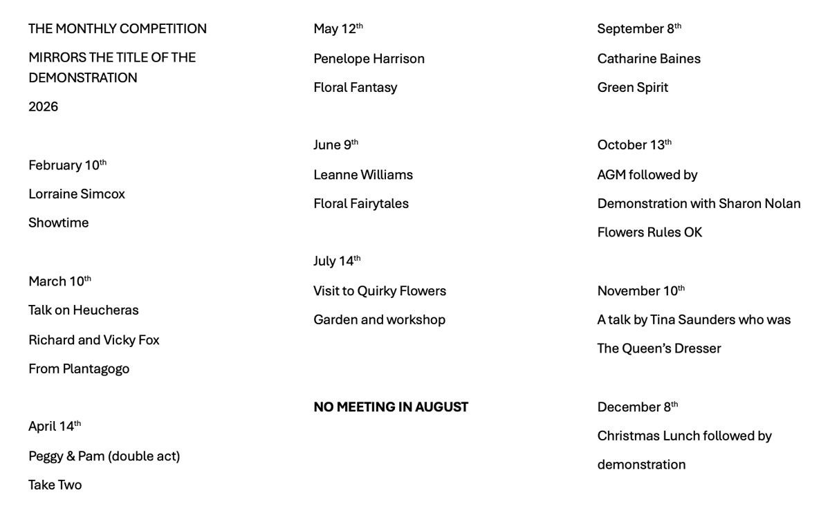 It is with great sadness that I must announce the passing of Shirley Miller, president of South Cheshire Floral Society, a long standing and valued member of our club.